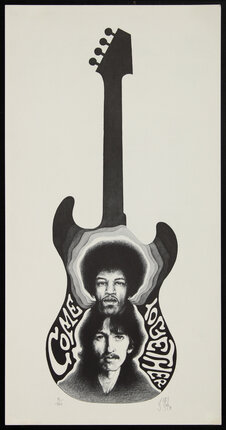1970 Signed and numbered (81/200) print with and image of Jimi Hendrix and George Harrison in the silhouette of a guitar.