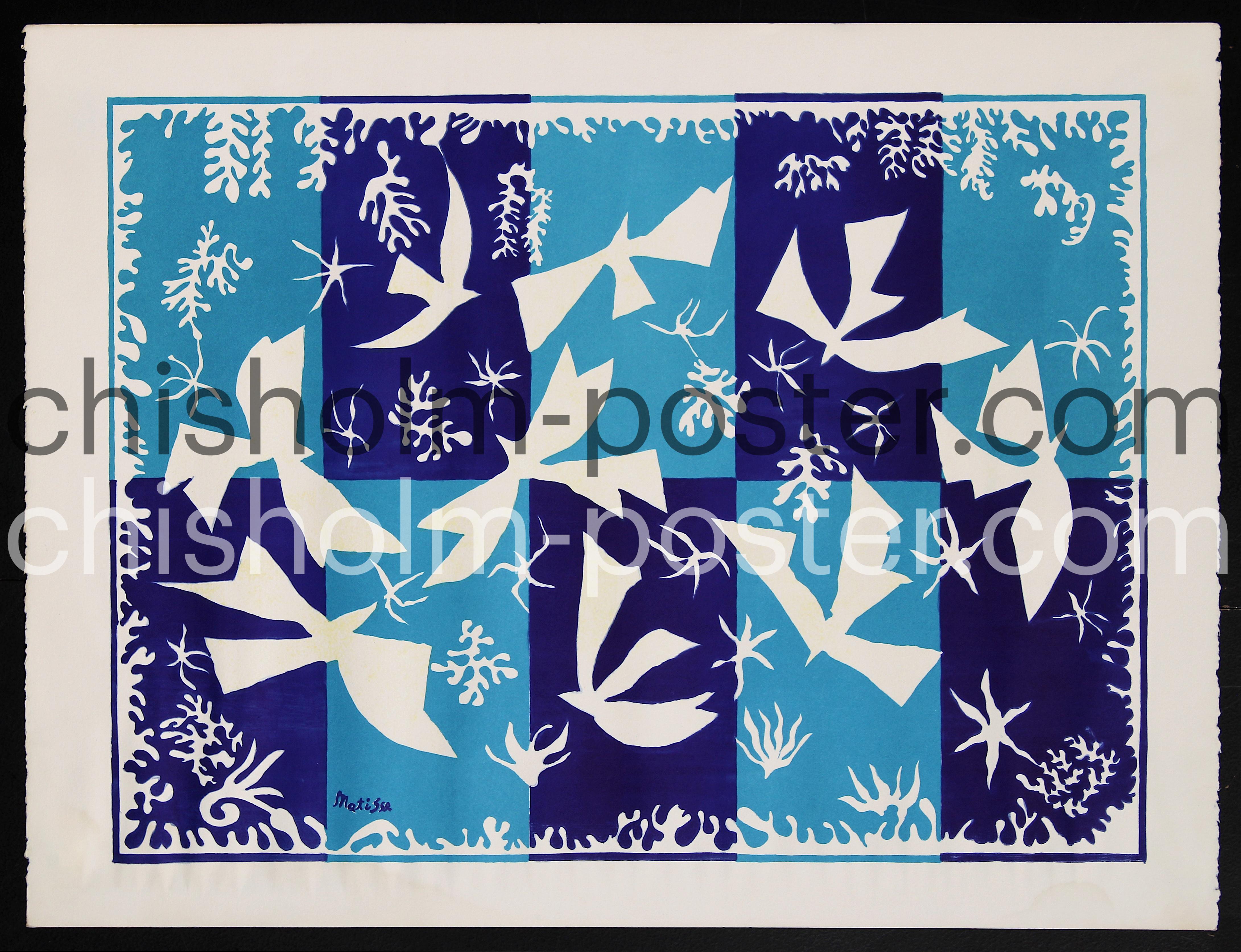Unknown date. Probably 1970s. Acquired from the Naomi Rosenblum Collection. Nicely printed lithograph on artist (Arches-style/ watercolor) paper with deckled edge. Signature rendered in the bottom left. Taken from the artist's work "POLYNESIA OF THE SEA" (Polynésie, le ciel), 1946 located at the Centre Pompidou, Paris. The original work was signed at the bottom right, this print is unusual in that it places the signature at the left.