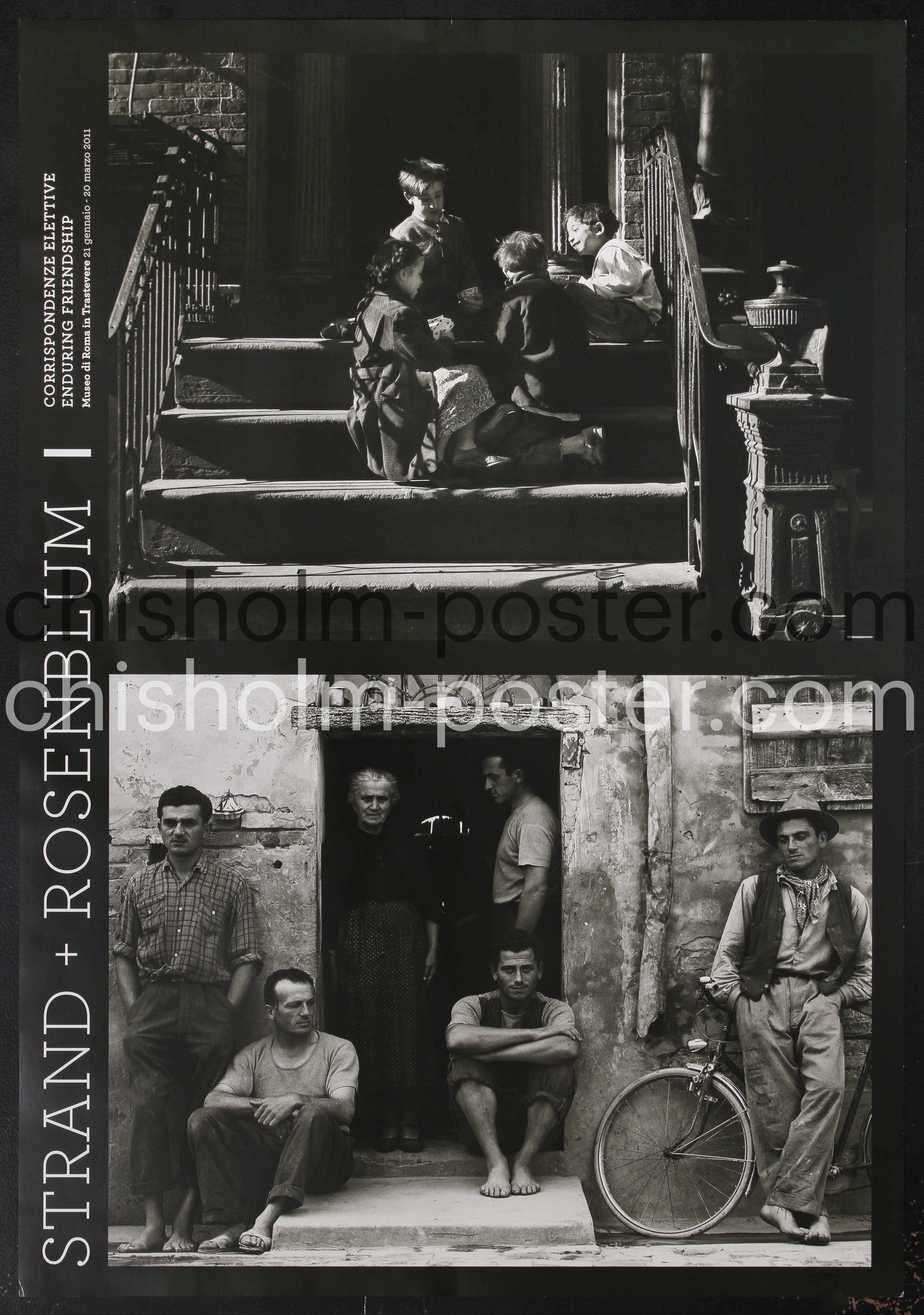 2011 Photography exhibition poster for an exhibit at the Museo di Roma in Trastevere, Rome, Italy. Refers to photographers Paul Strand and Walter Rosenblum.