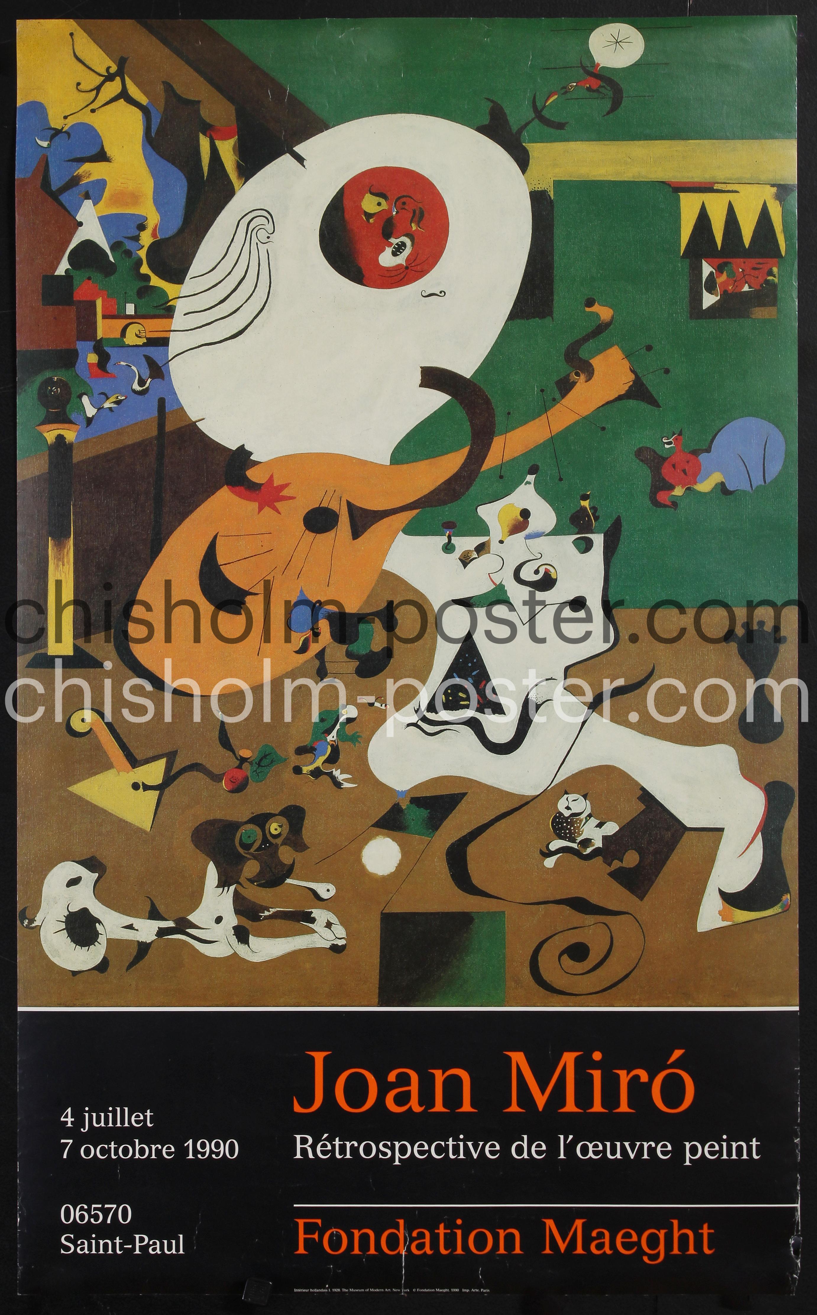 1990 Art exhibition poster using the 1928 artwork titled "Interieur Hollandais I / Dutch Interior I". The Maeght Foundation or Fondation Maeght (pronounced [mɑɡ]) is a museum of modern art on the Colline des Gardettes, a hill overlooking Saint-Paul de Vence in the southeast of France about 25 km (16 mi) from Nice. It was established by Marguerite and Aimé Maeght in 1964 and houses paintings, sculptures, collages, ceramics and all forms of modern art. (Wikipedia)
