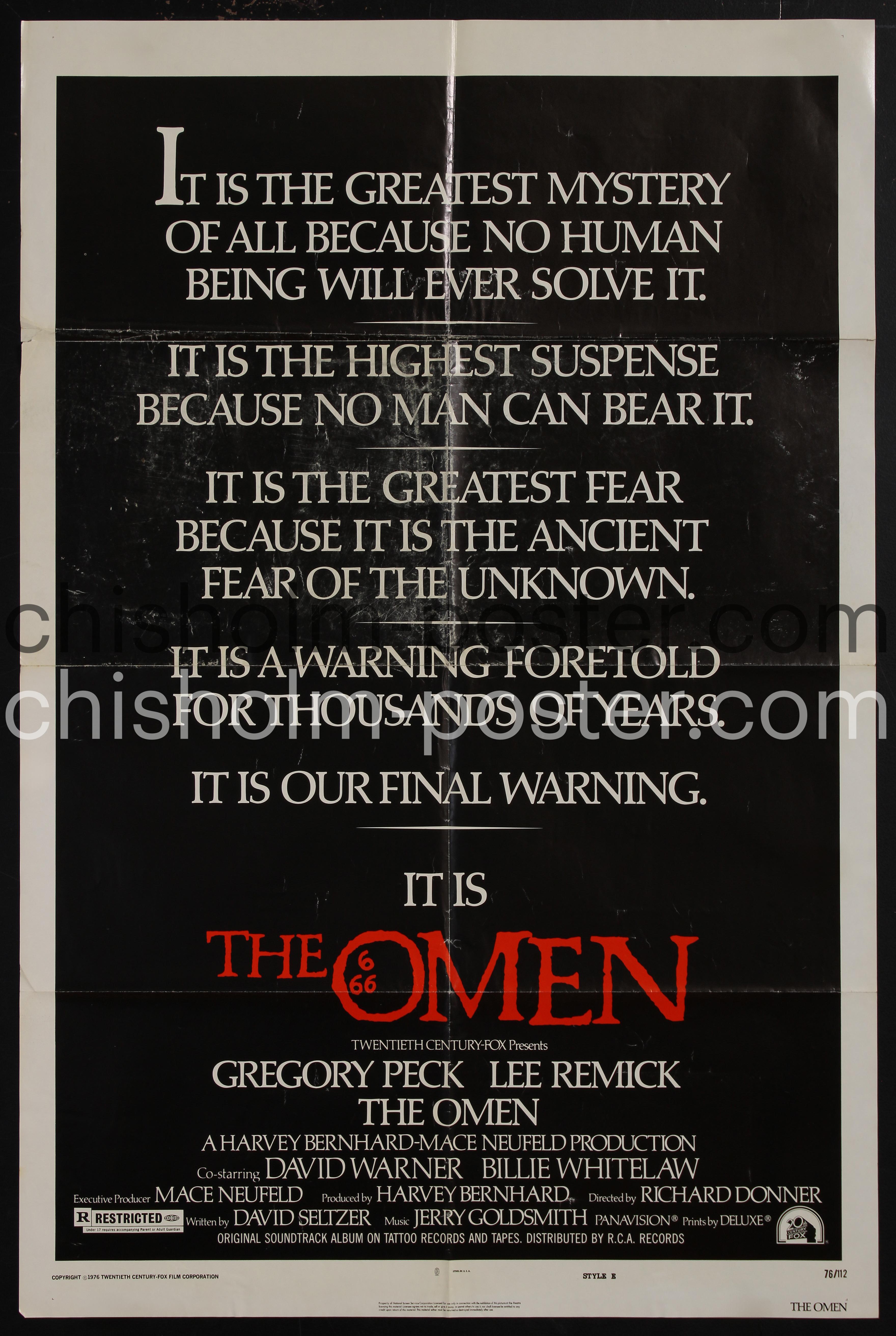 The Omen is a British/ American 1976 supernatural horror film directed by Richard Donner and written by David Seltzer. The film's plot follows Damien Thorn, a young child replaced at birth by his father, unbeknownst to his wife, after their biological child dies shortly after birth. As a series of mysterious events and violent deaths occur around the family and Damien enters childhood, they come to learn he is in fact the prophesied Antichrist. (Wikipedia)