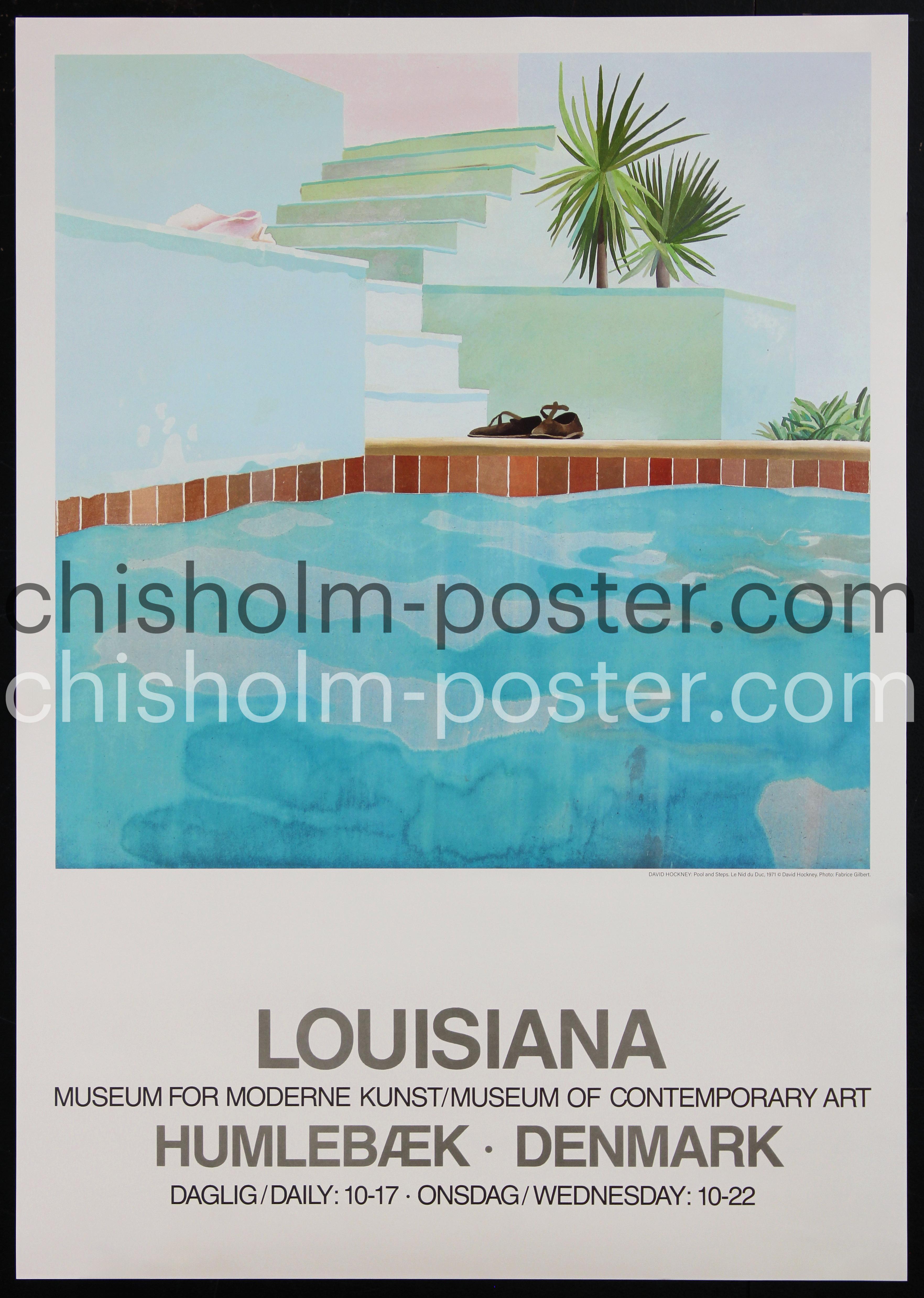 In 2001 the Louisiana presented a retrospective exhibition of Hockney’s work entitled David Hockney - Painting 1960-2000. This poster was most likely created around that event. The featured artwork, "Pool and Steps," was created by David Hockney in 1971, after he moved to California and became known for his iconic swimming pool paintings.
