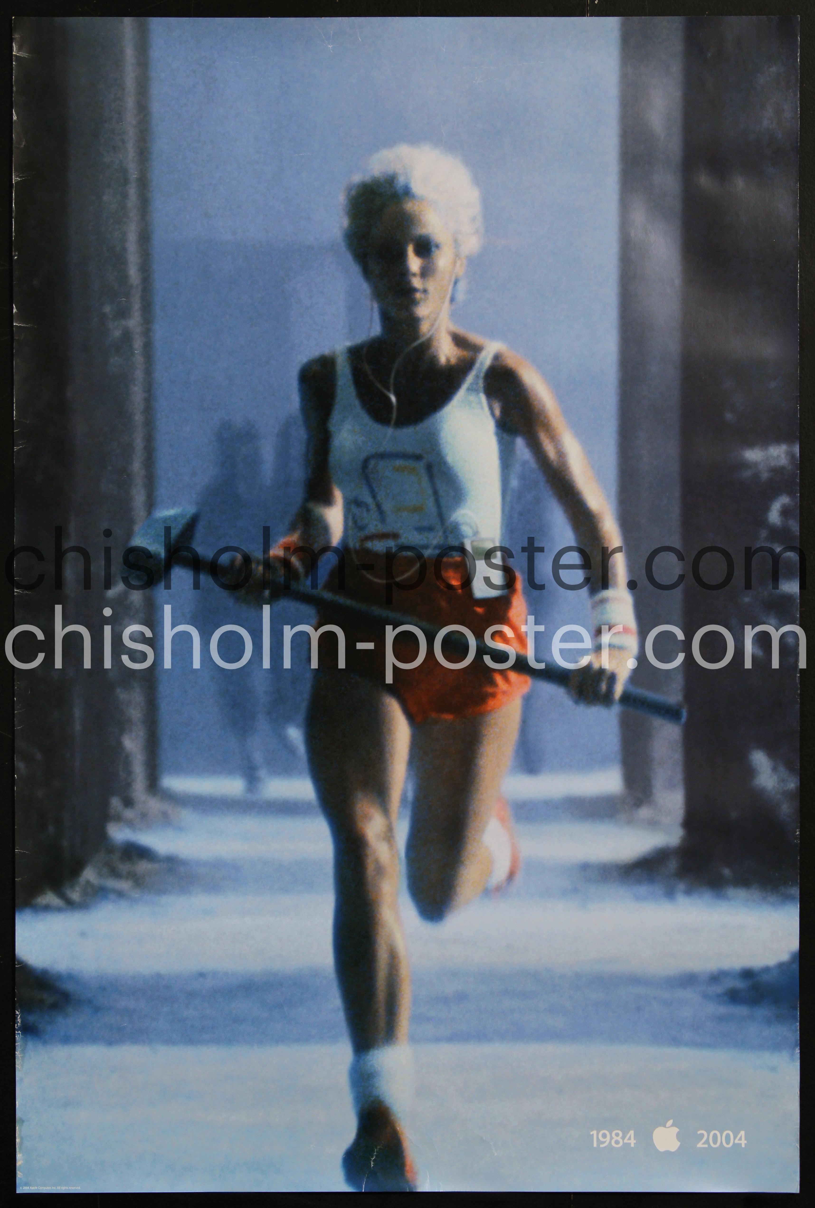 2004 20th year anniversary of the famed "1984" Apple commercial. The film still is altered to include a then new ipod. The original commercial "introduced the Apple Macintosh personal computer. It was conceived by Steve Hayden, Brent Thomas, and Lee Clow at Chiat/Day, produced by New York production company Fairbanks Films, and directed by Ridley Scott. The ad was a reference to George Orwell's noted 1949 novel, Nineteen Eighty-Four, which described a dystopian future ruled by a televised "Big Brother". English athlete Anya Major performed as the unnamed heroine and David Graham as Big Brother... Its second televised airing, and only US national airing, was on January 22, 1984, during a break in the third quarter of CBS's telecast of Super Bowl XVIII... Originally a subject of contention within Apple, it has subsequently been called a watershed event and a masterpiece in advertising... Revisiting the commercial in Harper's Magazine thirty years after it aired, social critic Rebecca Solnit suggested that "1984" did not so much herald a new era of liberation as a new era of oppression." (Wikipedia)