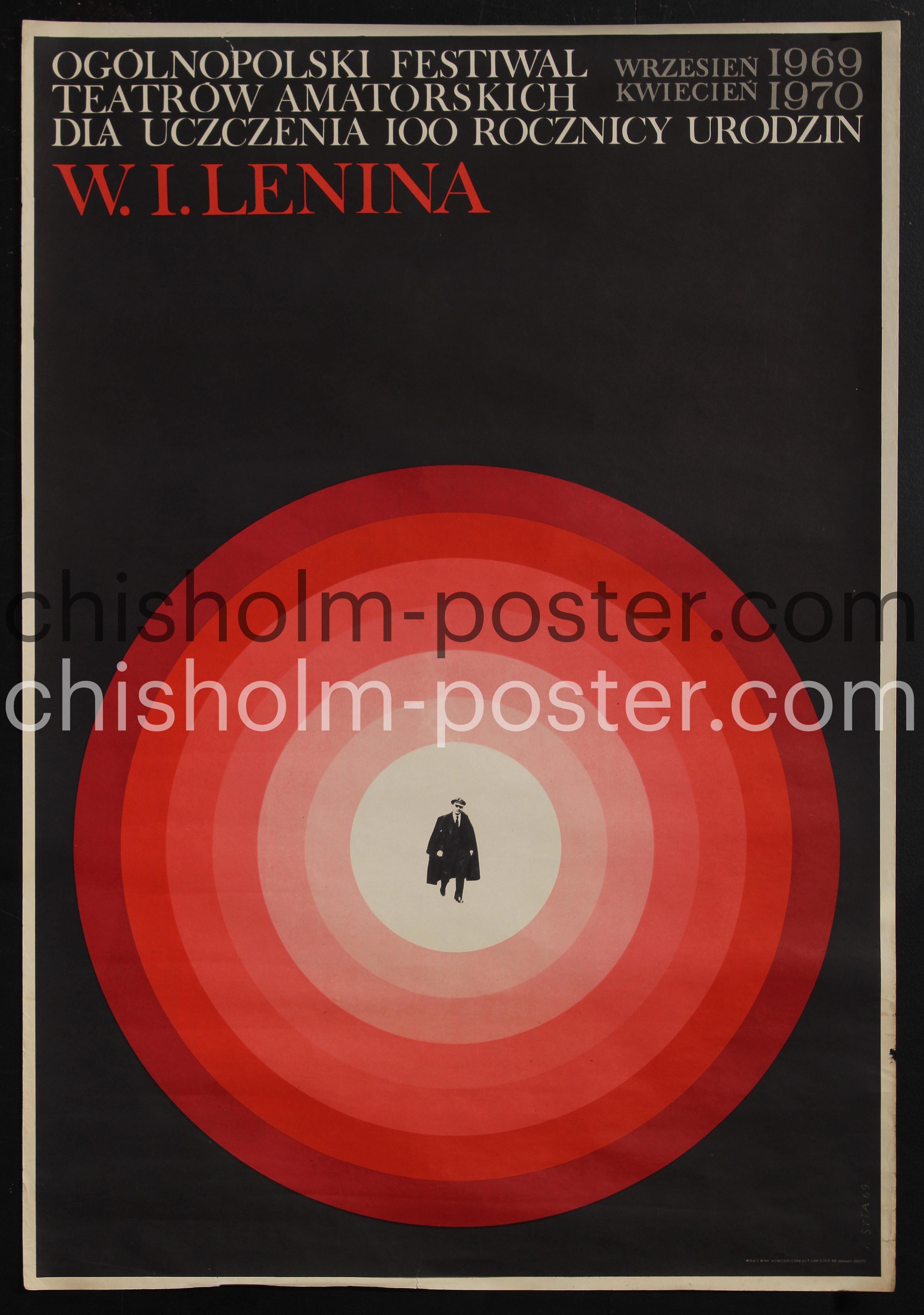 Polish poster advertising National Festival of Amateur Theatres to Commemorate the 100th Anniversary of Birth of V.I.Lenin. Poster designed by KAROL SYTA, 1969 for the 69/70 season.