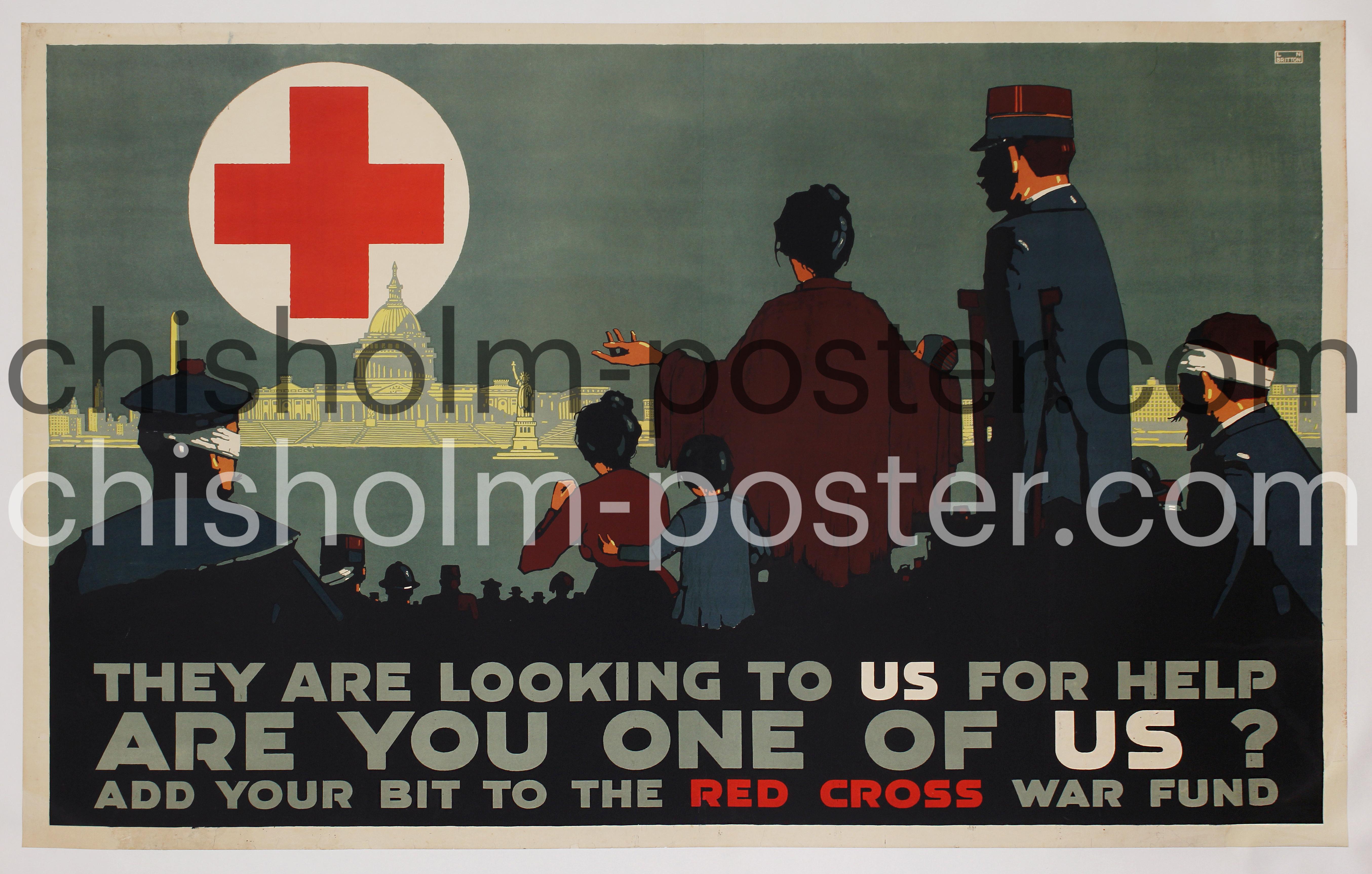 Original Vintage Poster: They are Looking to Us for Help. Are You One of Us? Add Your Bit to the Red Cross War Fund