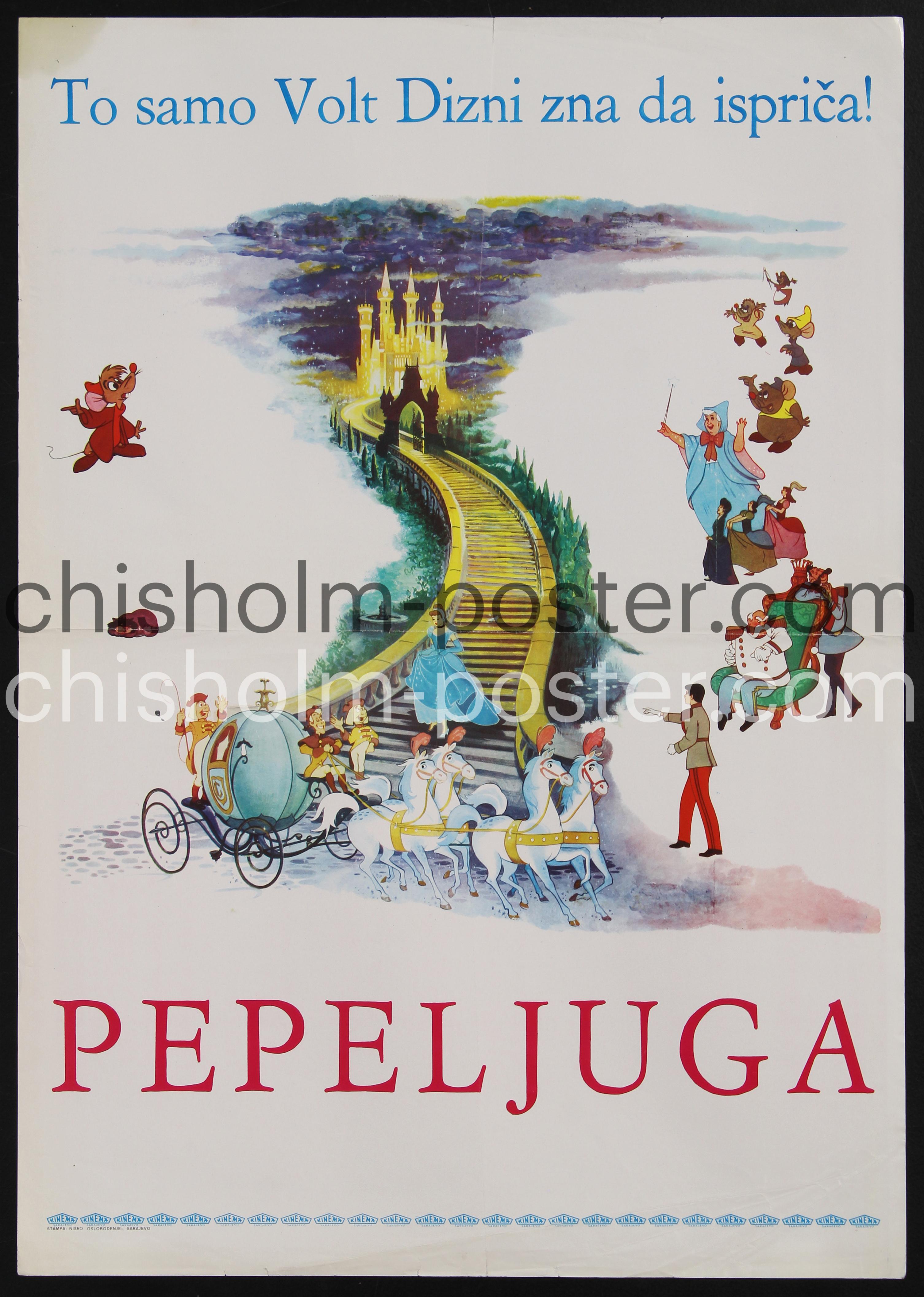 1980s (or 70s) Yugoslavian poster for a Walt Disney theatrical re-release of the classic 1950 Cinderella animated film.