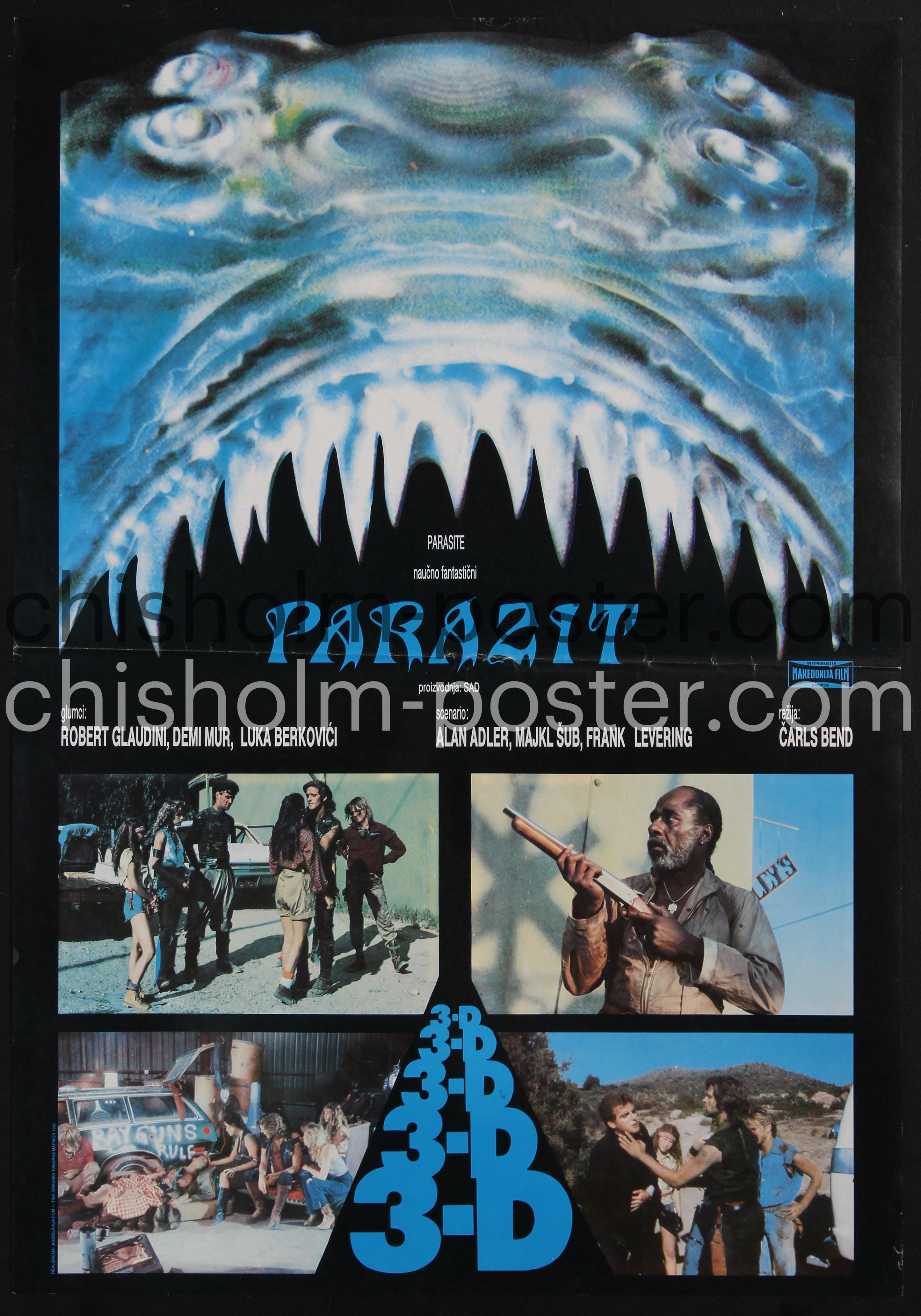 Yugoslavian release poster for the 1982 American science fiction horror film Parasite. It stars Robert Glaudini and features one of Demi Moore's early acting roles. "The film is set in a dystopian, post-apocalyptic future where the United States is controlled by a criminal organization which unwittingly creates an uncontrollable deadly parasite and sets it loose on the population." (Wikipedia)