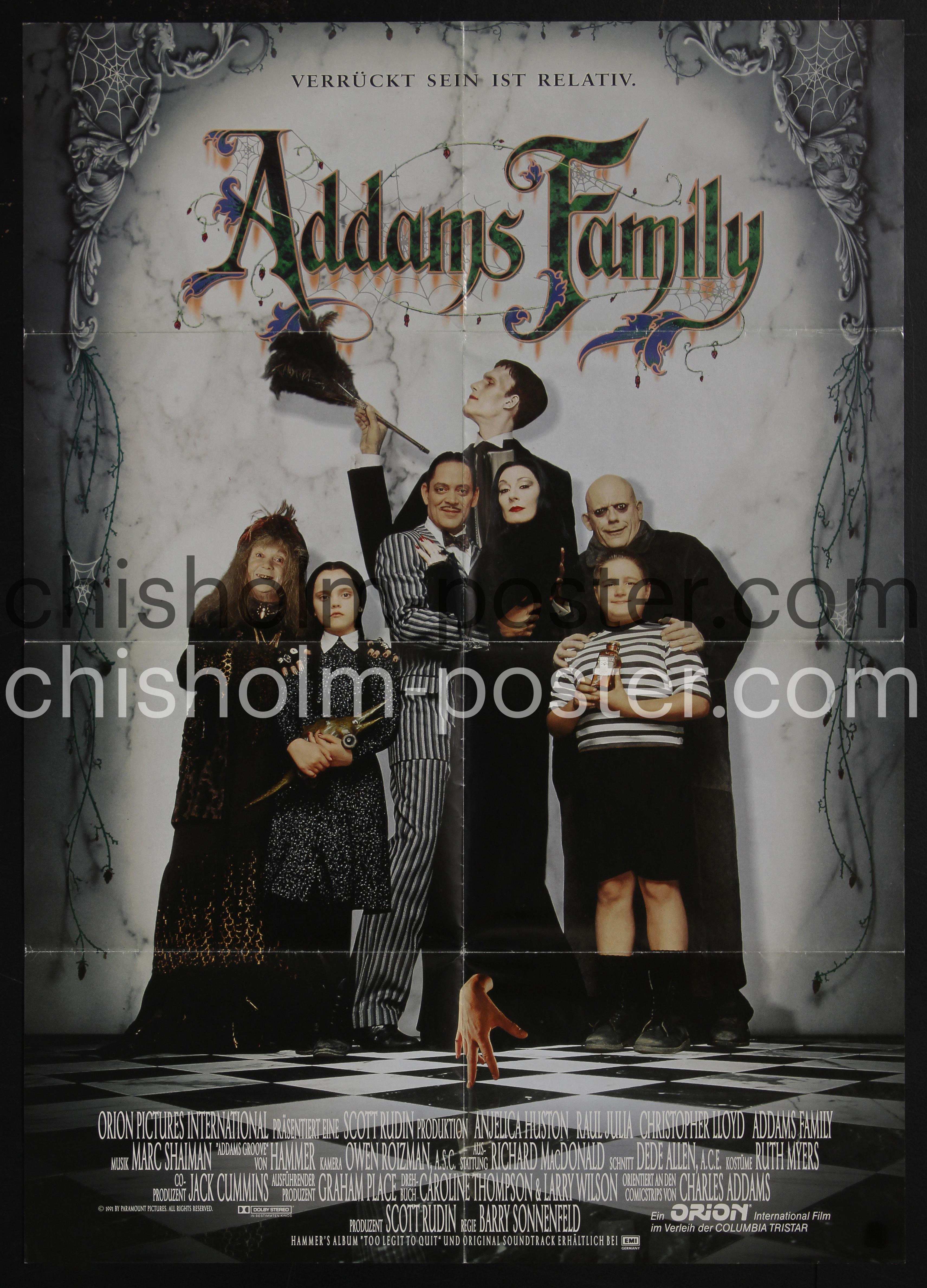 German release poster. The Addams Family is a 1991 American supernatural black comedy film based on the comic strip characters created by Charles Addams. Directed by former cinematographer Barry Sonnenfeld in his feature directorial debut, the film stars Anjelica Huston, who was nominated for a Golden Globe for her performance as Morticia Addams, Raul Julia as Gomez Addams, and Christopher Lloyd as Fester Addams. The film focuses on a bizarre, macabre, aristocratic family who reconnect with someone whom they believe to be a long-lost relative, Gomez's brother Fester Addams. (Wikipedia)
