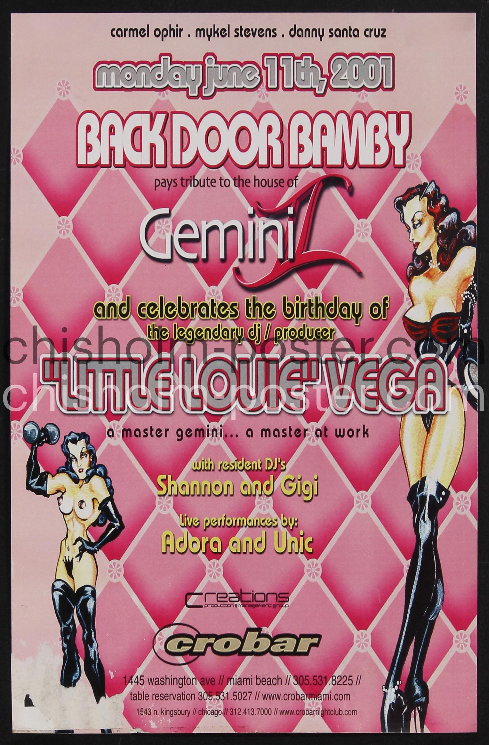 Original Vintage Poster: Crobar - Back Door Bamby Pays Tribute to The House of Gemini II and Celebrates the Birthday of Little Louie Vega