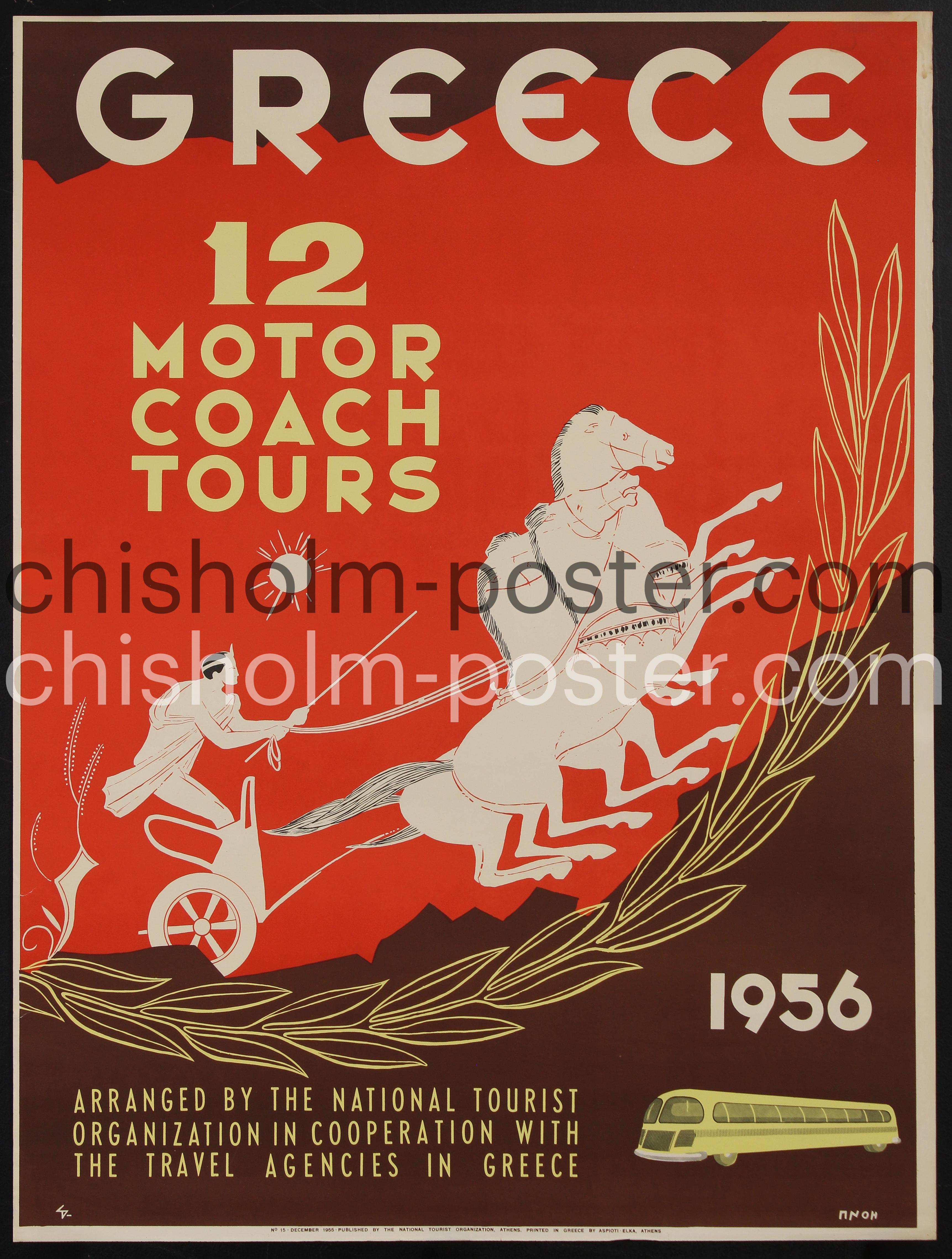 Original Vintage Poster: Greece - 12 Motor Coach Tours 1956